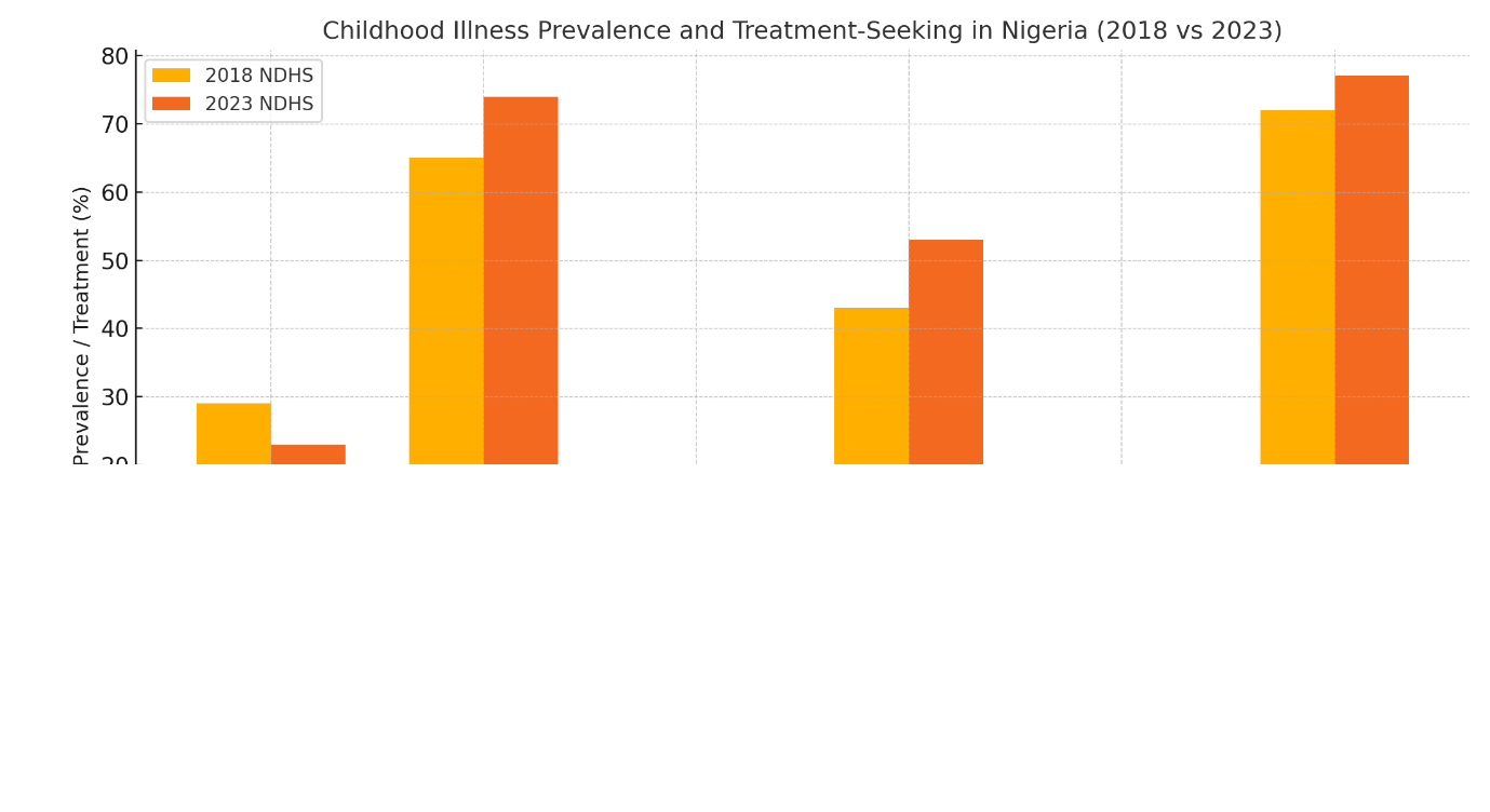 Childhood infectious diseases particularly malaria, diarrhea, and acute respiratory infections (ARI) remain leading causes of morbidity and mortality among children under five in Nigeria. The NDHS 2018 and 2023–24 comparison provides critical insights into the evolving epidemiological trends of these diseases and, more importantly, into the health-seeking behavior of caregivers in response to childhood illness.